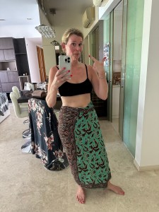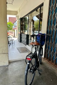 It has been bloody hot these past few days. And despite this slowing my pace quite a bit, I’ve taken one early morning walk this week and lifted myself up at the iron in the air-conditioned gym a few times this week. I was spared a Bali Belly so I’ll have to train off all the delicious carbs, that I ate in the last two weeks, myself. Every time I want to go cycling, the heavens burst open. Today I don’t feel like dragging myself into the gym and it’s too hot for my head to join the Thursday walking club. The sun is shining, not a cloudburst for miles around. I decide to go shopping on my bike.