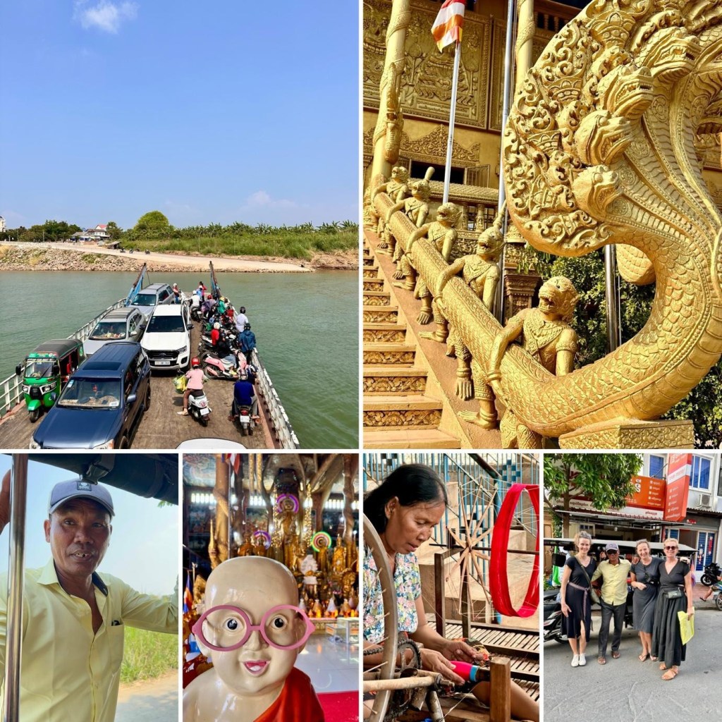 The girls are back and we set out together again, first to the Russian market and then with a TukTuk carriage to Silk Island. The carriage ride gives me a feeling of being on a hayride. Our driver is a cheerful guy who, despite missing a few teeth, smiles broadly. We leave the bustling city behind, wonderful! The breeze blows the 38-degree heat pleasantly away from us. With the ferry, we cross the Mekong River, which is an experience in itself.