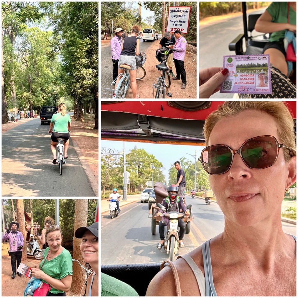 Dag twee staat een bezoek aan de tempels op het programma. We besluiten fietsen te huren in Siem Reap en zelf op pad te gaan. Het is al aardig warm als we na een half uur bij ticket-post 1 aankomen. Of we onze tickets even willen laten zien. Dan blijkt dat de tickets daar weliswaar gecontroleerd worden maar niet verkocht! “Waar dan wel”, vragen we verbaasd. Dat blijkt 8 km verderop te zijn.