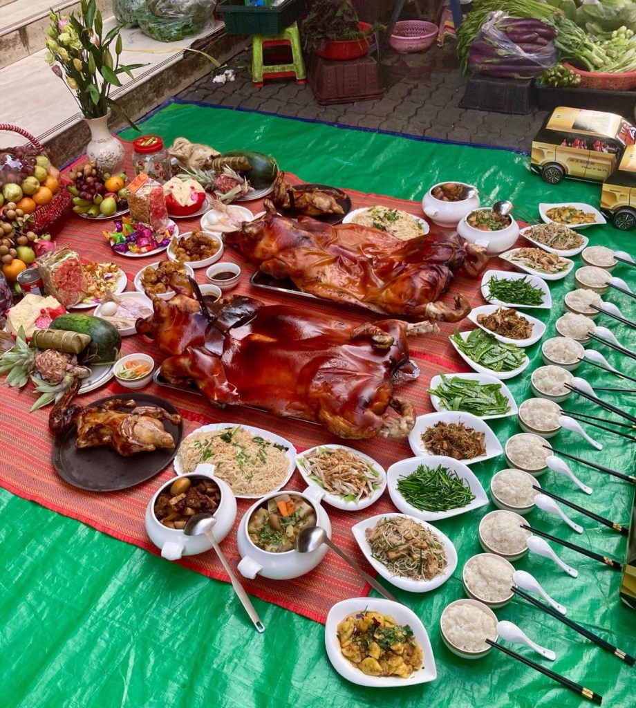 Back at the hotel, we still need to go out for USD. We end up at a market in a poor part next to a stinking canal. The street is unpaved, and even though it’s already 5 p.m., the meat and fish are still displayed openly. Flies buzz around, and an old lady waves a rod back and forth to chase them away. A glazed pig lies further on, among other offerings in honor of Chinese New Year. After some detours, we find an ATM that works. And as if we’ve smelled it, almost next to the ATM is an ice cream parlor with delicious ice cream. We take a taxi back to the hotel.