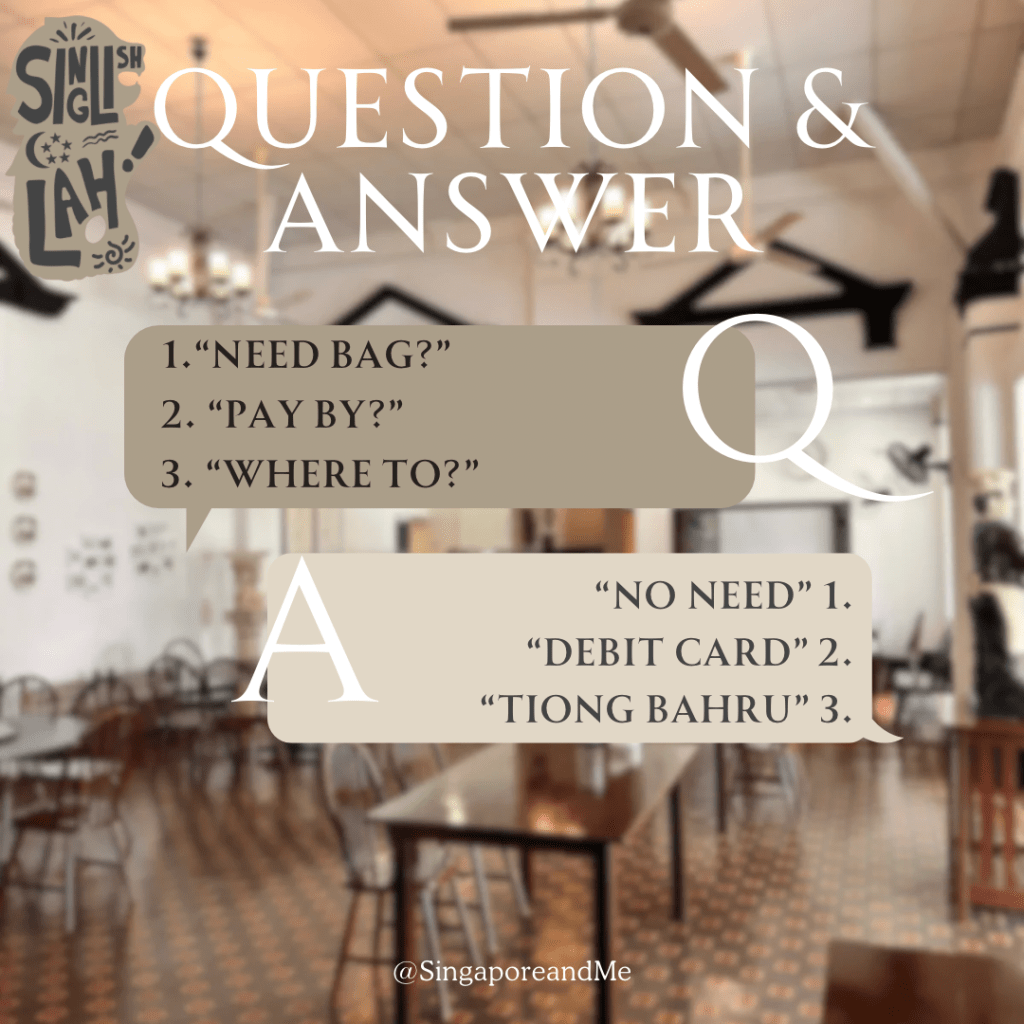 Back to Singapore. I experience the lack of service largely due to the language barrier. Singlish is completely different from English, something I had to get used to at first. Not just the word choice but also the sentence structure. Politeness, introductions, and proper closings… not in Singlish. The more adjectives and auxiliary verbs you use, the less you are understood or clear. Even for us Dutch, the language is very direct and, I think due to its tone or lack thereof, it comes across as quite curt: