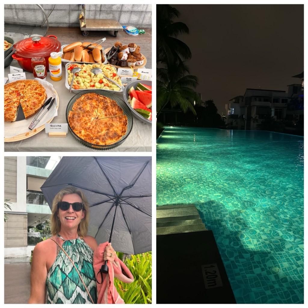 In Singapore wonen we in een condo (lees blog condoleven). Het leven is hier behoorlijk anoniem. We kennen inmiddels een stuk meer buurmensen dan een jaar geleden, en dat is gezellig. Niet dat we bij elkaar over de vloer komen, maar het is gezellig in de zin van elkaar begroeten op weg naar de lift, of het elkaar dingen lenen. Anders dan thuis hebben we hier geen kinderen die herkend worden, of buitenklusjes die voor praatjes zorgen. Wel is er het zwembad waar we elkaar tegenkomen, en de gym. Afgelopen weekend organiseerde een tof stel – ze wonen ver genoeg van ons appartement om meer vrienden dan buren te zijn 😉 – een poolparty. Het was supergezellig, ontspannen, en de gezamenlijke noemer van hun vriendschap met zowel ons als andere gasten, grotendeels condogenoten, maakte echt contact en een gesprek veel gemakkelijker.