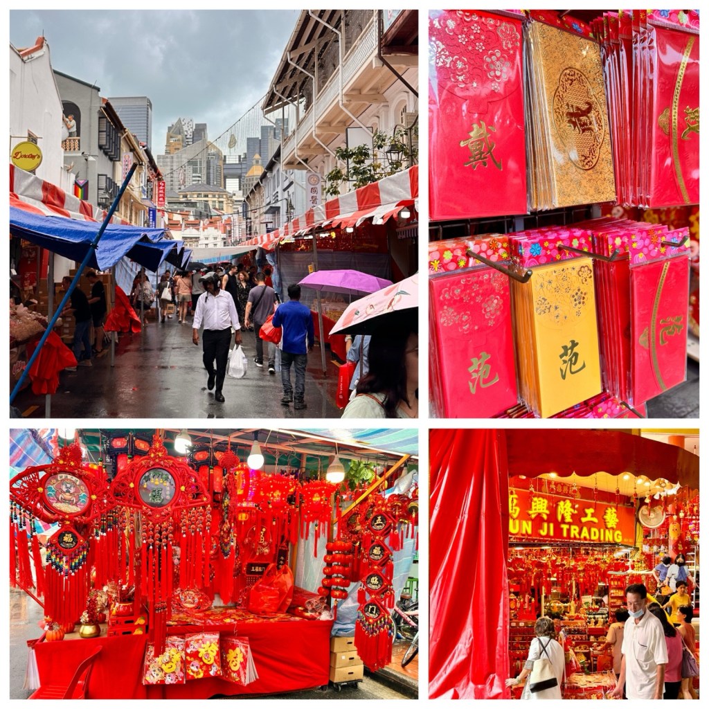 During the festivities—which begin two weeks before the official date and continue well after—I enjoy the vibrant decorations and lively atmosphere in Chinatown. Around this time, the streets are packed, and shops are overflowing with gift packs and treats. In true Singapore style, everything comes with a hefty price tag.