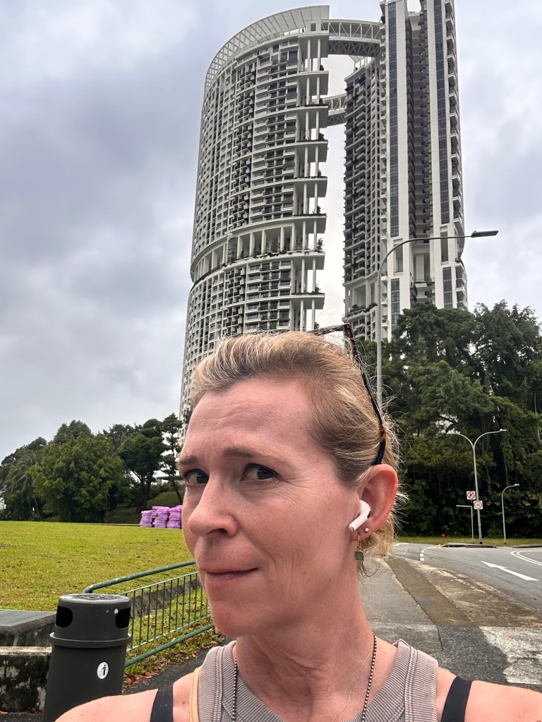 Ons nieuwe thuis is One Pearl Bank, een spiksplinternieuw gebouw midden in het Pearl’s Hill City Park. Op exact dezelfde locatie stond vroeger Pearl Bank Apartments, een iconisch, cilindervormig gebouw uit 1976. Het was destijds het hoogste woongebouw van Singapore en stond bekend om zijn unieke vorm en brutalistische architectuur. Ondanks protesten van erfgoedliefhebbers werd het gebouw gesloopt om plaats te maken voor meer woningen.