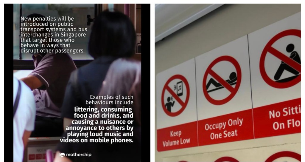 It’s not allowed to disturb others (read more in: Singapore! What a Fine City). But what counts as disturbing? More and more I see posts online, photos of rule-breakers, with captions saying Singapore isn’t Singapore anymore — that rules aren’t enforced enough. That more and more people are ignoring the rules. Eating or drinking in the MRT. Talking loudly on speakerphone. Playing videos or music with sound. The comments vary: caning, deportation, fines. And less often: let them be.