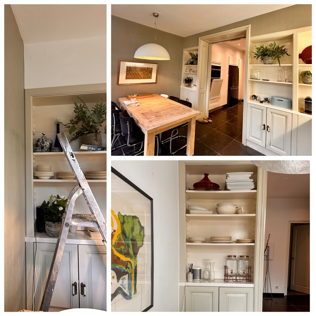 Hij trapt erin. Met meetlint en zucht meet hij de boel na. “Drie kastjes moeten wel lukken als ik een stuk afzaag van het linkerkastje,” is zijn conclusie. “Laten we dan maar naar de IKEA gaan.” We slaan in en beginnen daags daarna aan mijn klus, die inmiddels onze klus is geworden.