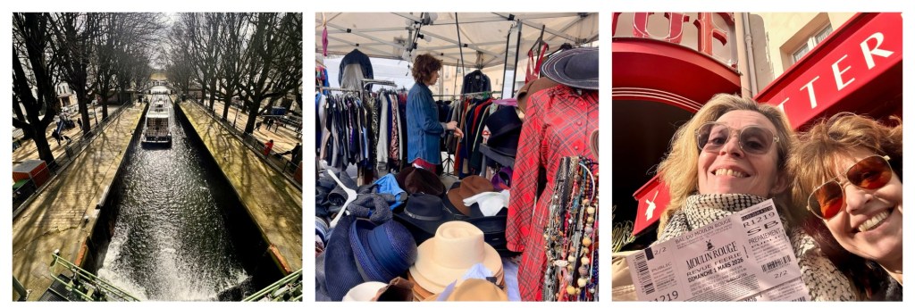 We wandelen de volgende dag langs Canal Saint Martin waar we op een bruggetje boven een van de sluisjes kijken hoe een kanaalboot zich laat liften naar het volgende waterpeil. We struinen over een bric à brac marktje waar Ing een spijkerblousje scoort en ik de verkoopster, ondanks haar poging dat te verbloemen, betrap op een Nederlandse tongval in haar Frans en Engels. Via hapjes en drankjes en een rondje over Place des Vosges wandelen we via Île de la Cité rondom de in de steigers staande Notre Dame door naar Quartier Latin. Nog meer marktjes. Ik hou ervan.