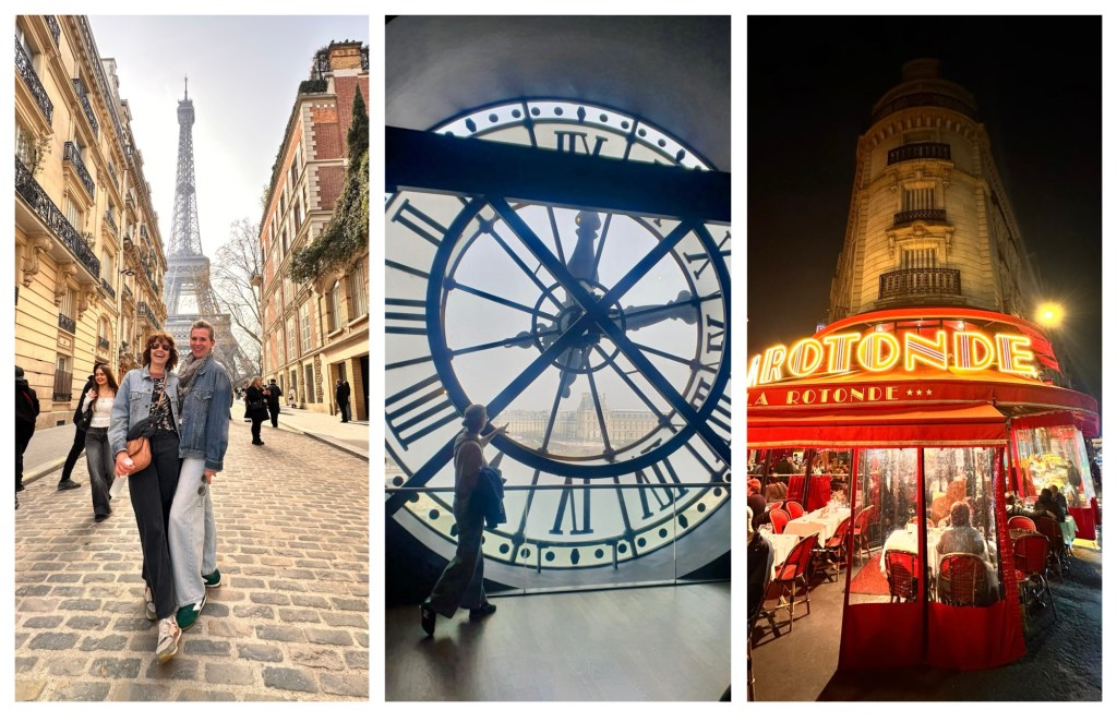 De laatste dag starten we in Musée d’Orsay waar we in een half uur vanaf ons hotel naartoe lopen door de prachtige straten van onze wijk. Wat een geweldig museum. Het gebouw, van oorsprong een station, is al indrukwekkend op zichzelf. De tentoongestelde kunst evenzo. Van daaruit wandelen we een heel stuk langs de Seine, waar we in het zonnetje een crêpe eten. We komen uit bij de Eiffeltoren die, omringd door toeristen en bloesem, een niet te missen eyecatcher blijft. Natuurlijk maken we ook wat obligate foto’s en kijken we toe terwijl twee dames zich in zuurstokroze verkleden om dat ook te doen. Nog wat terrasjes verder is het tijd om onze voeten rust te gunnen en ons op te frissen voor de laatste avond.